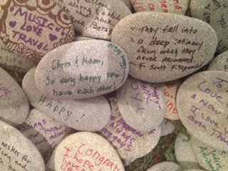 Another table had a pile of flat rocks and markers on it and we were asked to write sweet messages to the newlyweds.