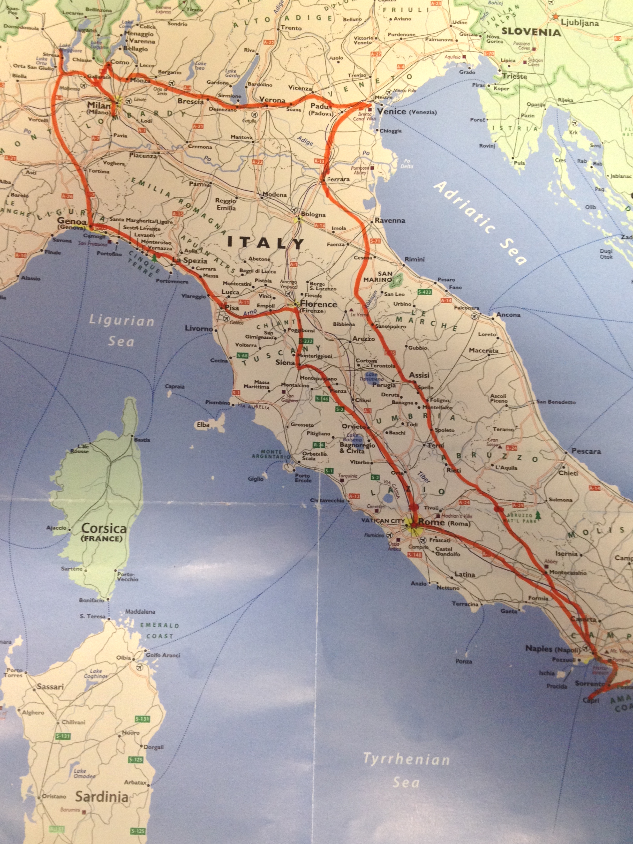 Our trip outlined in red. This boot was made for touring. Our journey is outlined in red.