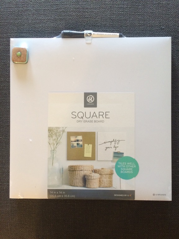 I picked up this square cork board and the dry-erase board at Target for $9.99 each, along with some fancy push pins for under $3 (also a Target find). I liked the idea of hanging my vision board in my office with my “statement” written on the dry-erase board underneath. You can also use a plain sheet of paper or poster board or a small canvas and glue the images to the material.