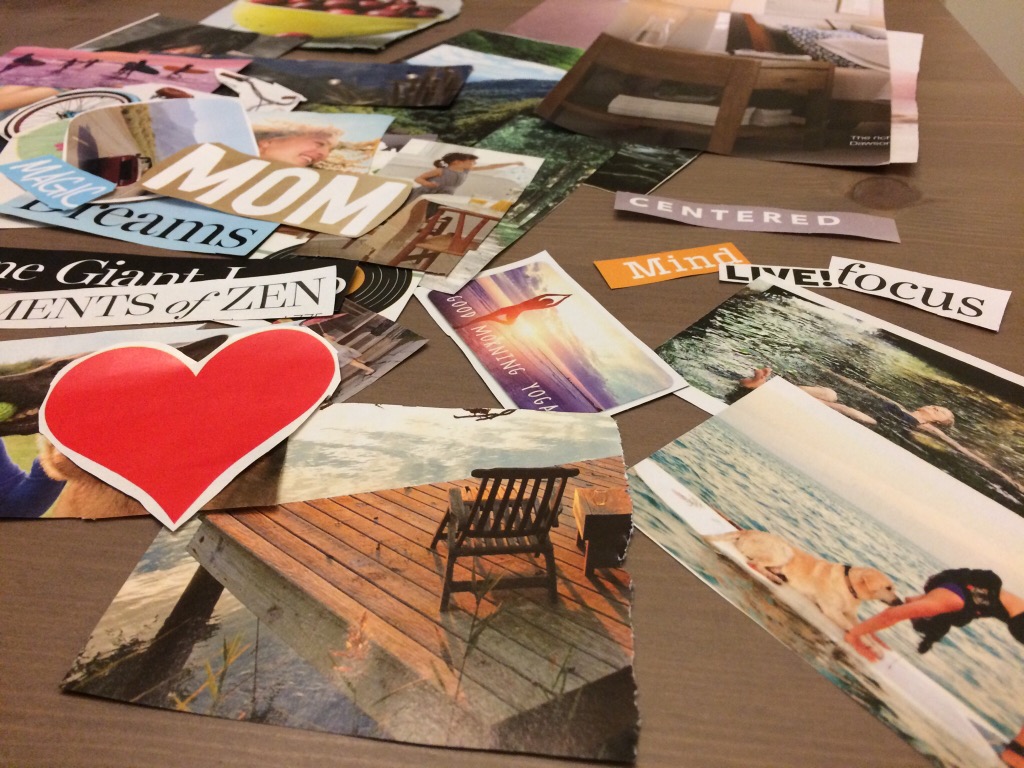 At the end, you glue the images to a piece of paper or poster board or you can paste the images to your canvas as you collect them. Then you sit back and analyze what you see. I found the experience freeing and eye-opening — and at times surprising. Objects appeared on the board that tappped into parts of my subconscience that hadn’t been unearthed. Seeing my completed vision board was always an “a-ha” moment.