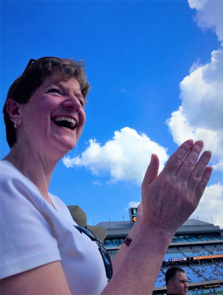 Rarer than a Bigfoot sighting – my dear wife enthusiastically cheering at a football game. (Probably because it was over.)