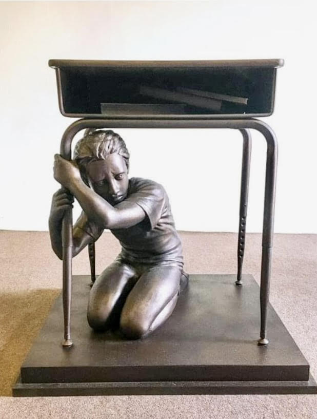 “The Last Lockdown” is a statue created by Manuel Oliver, who lost his son Joaquin in the shooting at Marjory Stoneham Douglas High School in 2018.