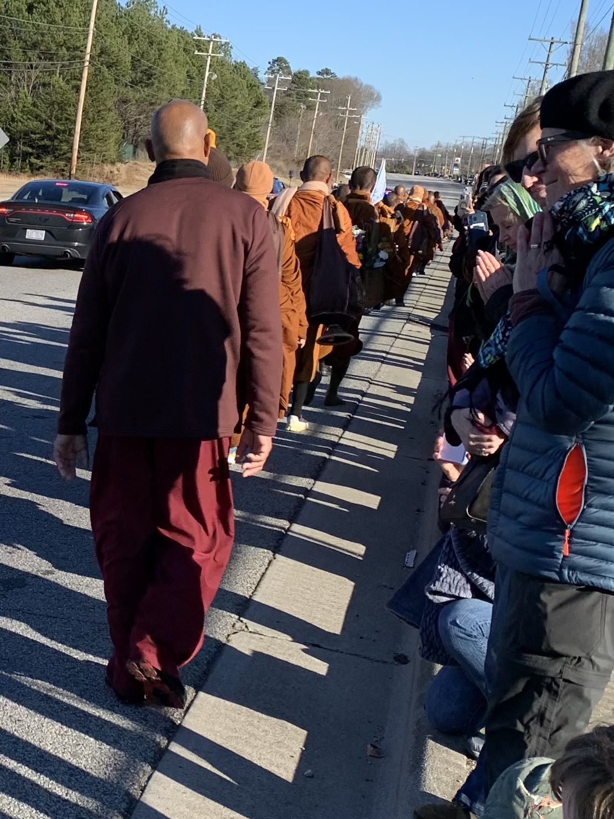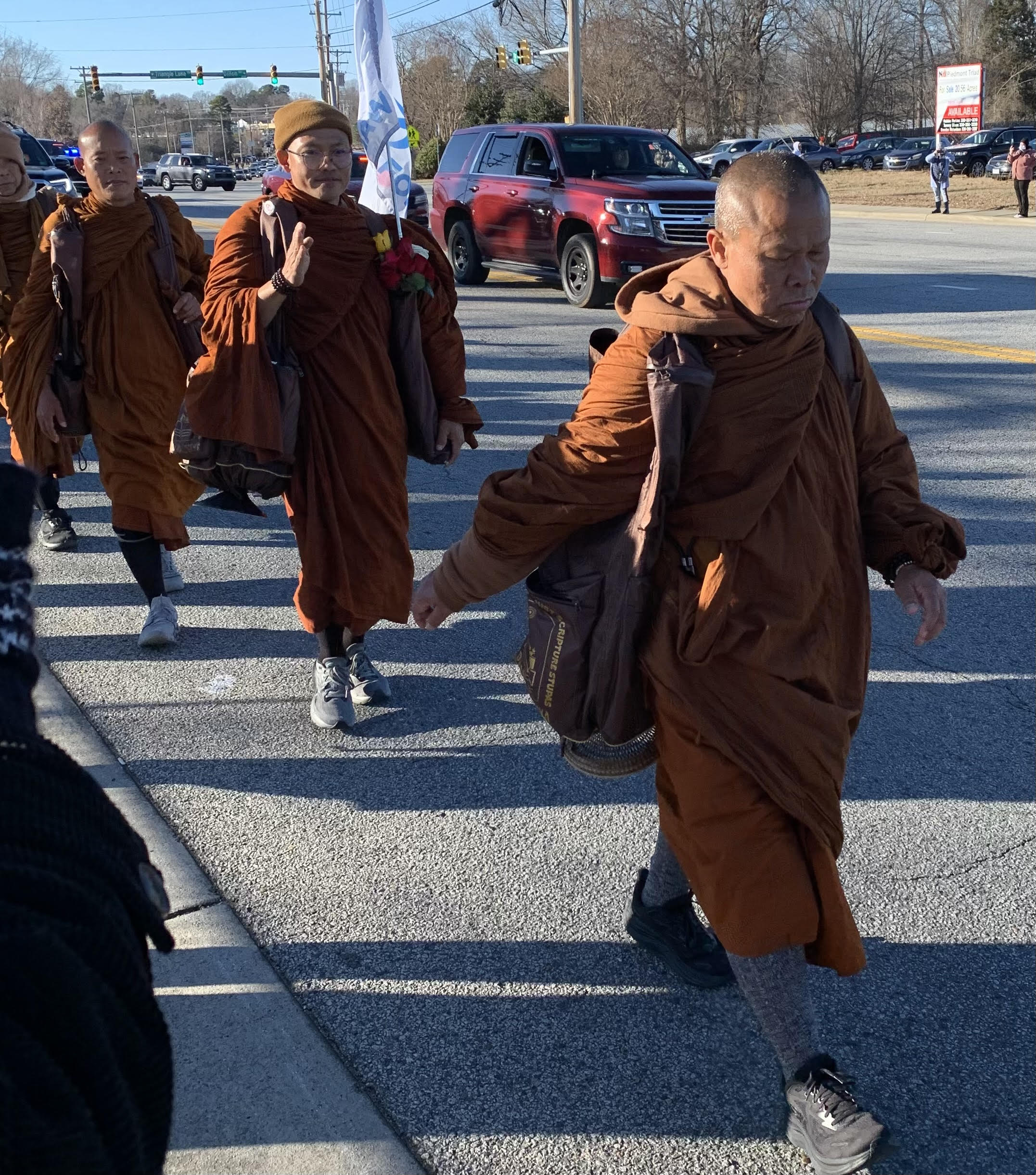 I saw a small parade of superheroes yesterday. Instead of capes, they wore simple, handmade robes in earthy colors – no flashy costumes. And they were not accompanied by a pounding soundtrack. No, these were the minimalist Avengers but make no mistake – their superpowers are enormous. Yes, I’m talking about the Buddhist monks who are participating in the Walk for Peace – a 120-day, 2,300-mile journey. These monks are walking from Texas to Washington, D.C. – talk about getting your steps in – to promote mindfulness, compassion and peace – something akin to hidden treasure these days.