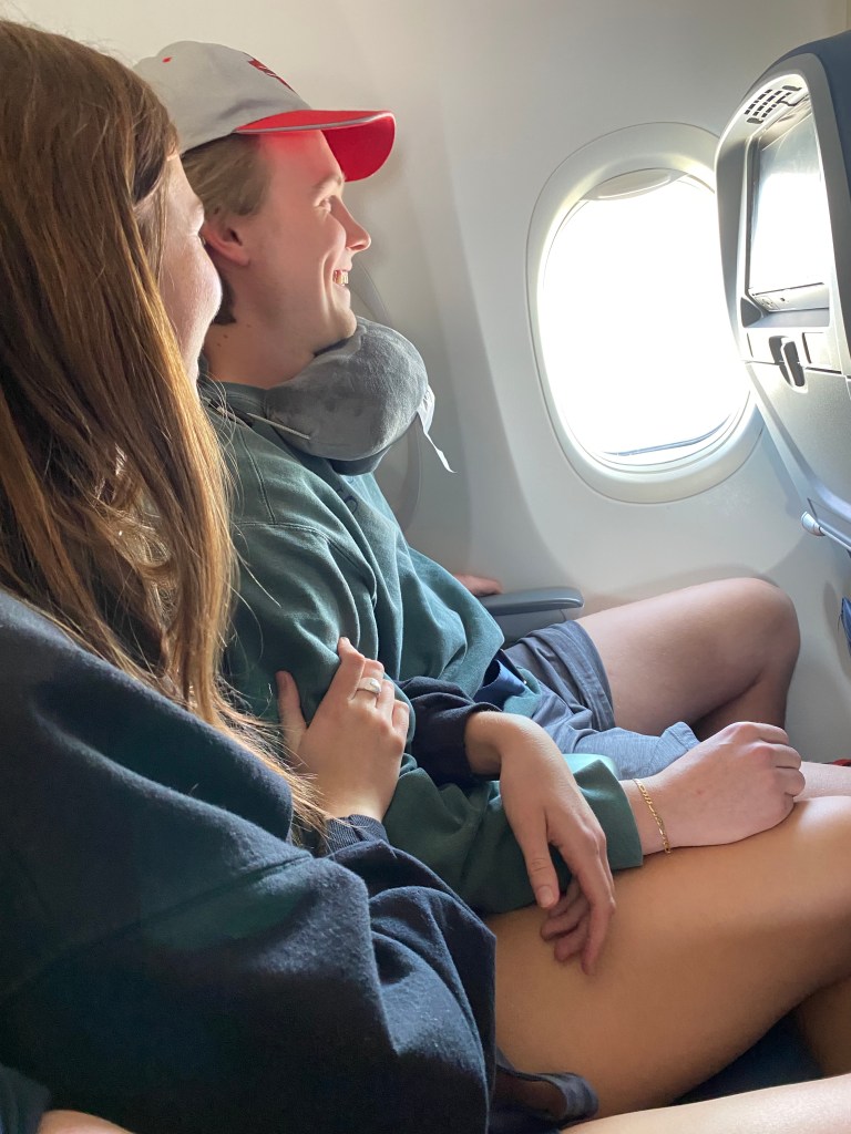 I was a bit apprehensive that there might be a lot of PDAS between these lovebirds on the long flight – nobody wants to see that. They did hold hands a lot and giggle softly in each other’s ears and for a few precious hours, I believed that love could heal our broken world. And then they shared a pair of earbuds to watch a movie on one of their phones – Finding Nemo. I couldn’t make that up if I tried. Seriously? They were so freaking cute together. I wanted to get the addresses of their parents and write them thank you notes for creating two such lovely humans. They appeared so unblemished from cynicism. They were like that perfect new composition book you carried with you on the first day of 7th grade – full of possibilities just waiting to be written.