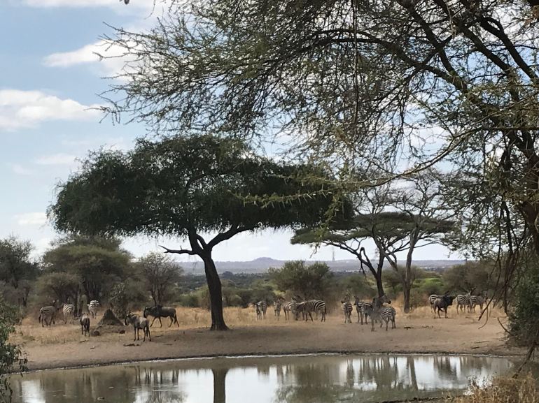 My good attitude was tested on the second day on a long game ride. We stopped at a spot that had restrooms and a safe space to stretch our legs. Throughout the day we had seen navy and black flags tied onto trees like a target. Someone in our group asked our guide what they meant. He explained, “Those colors attract the tsetse flies and help keep them off of us.”
